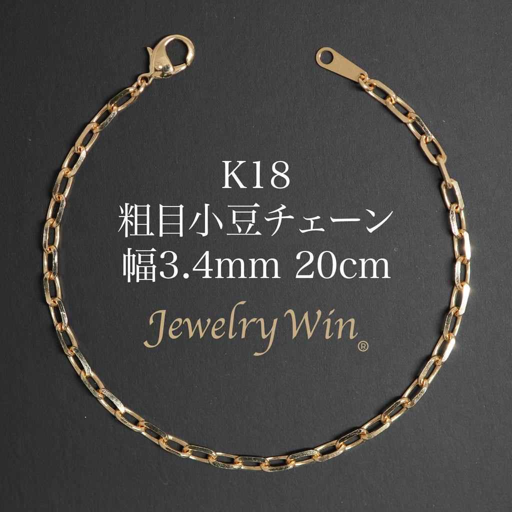 商品名 粗目小豆ブレスレット K18 幅3.4mm 1.0φ 20cm 小豆 チェーン