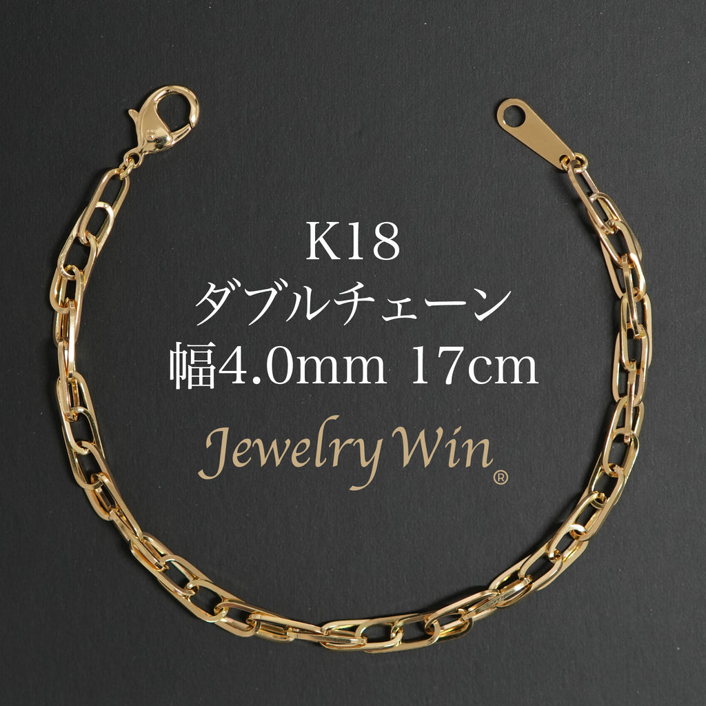 商品名 ダブルチェーン ブレスレット K18 幅4.0mm 0.7角線 17cm