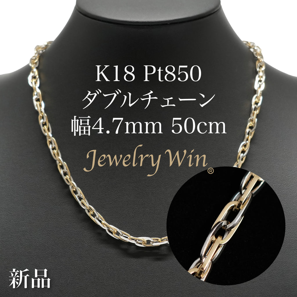 商品名 ダブルチェーン ネックレス K18 Pt850 コンビ 幅4.7mm 1.0角線 50cm