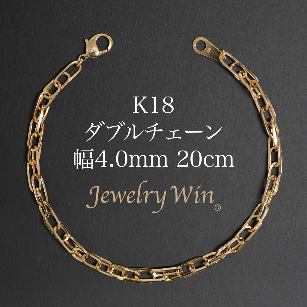 商品名 ダブルチェーン ブレスレット K18 幅4.0mm 0.7角線 20cm