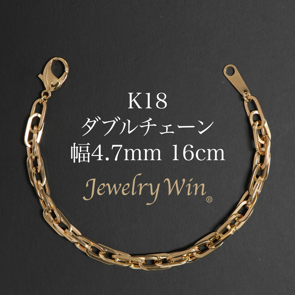 商品名 ダブルチェーン ブレスレット K18 幅4.7mm 1.0角線 16cm