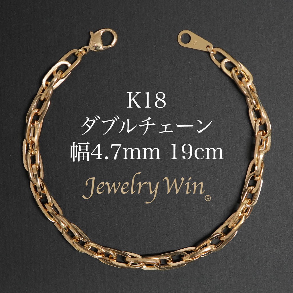 商品名 ダブルチェーン ブレスレット K18 幅4.7mm 1.0角線 19cm