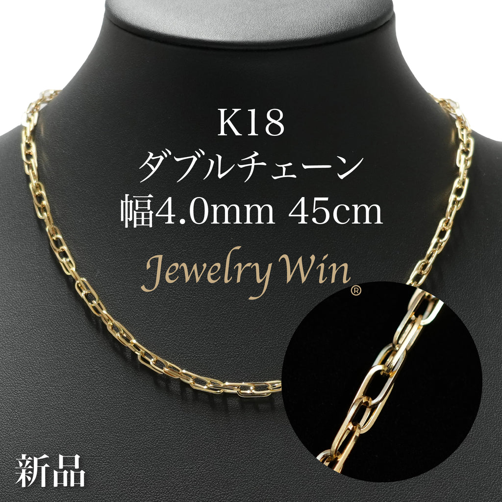 商品名 ダブルチェーン ネックレス K18 幅4.0mm 0.7角線 45cm