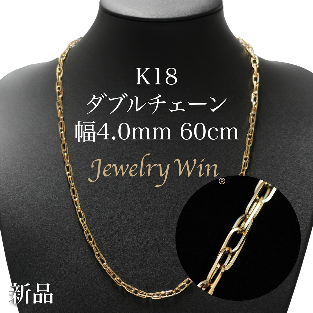 商品名 ダブルチェーン ネックレス K18 幅4.0mm 0.7角線 60cm