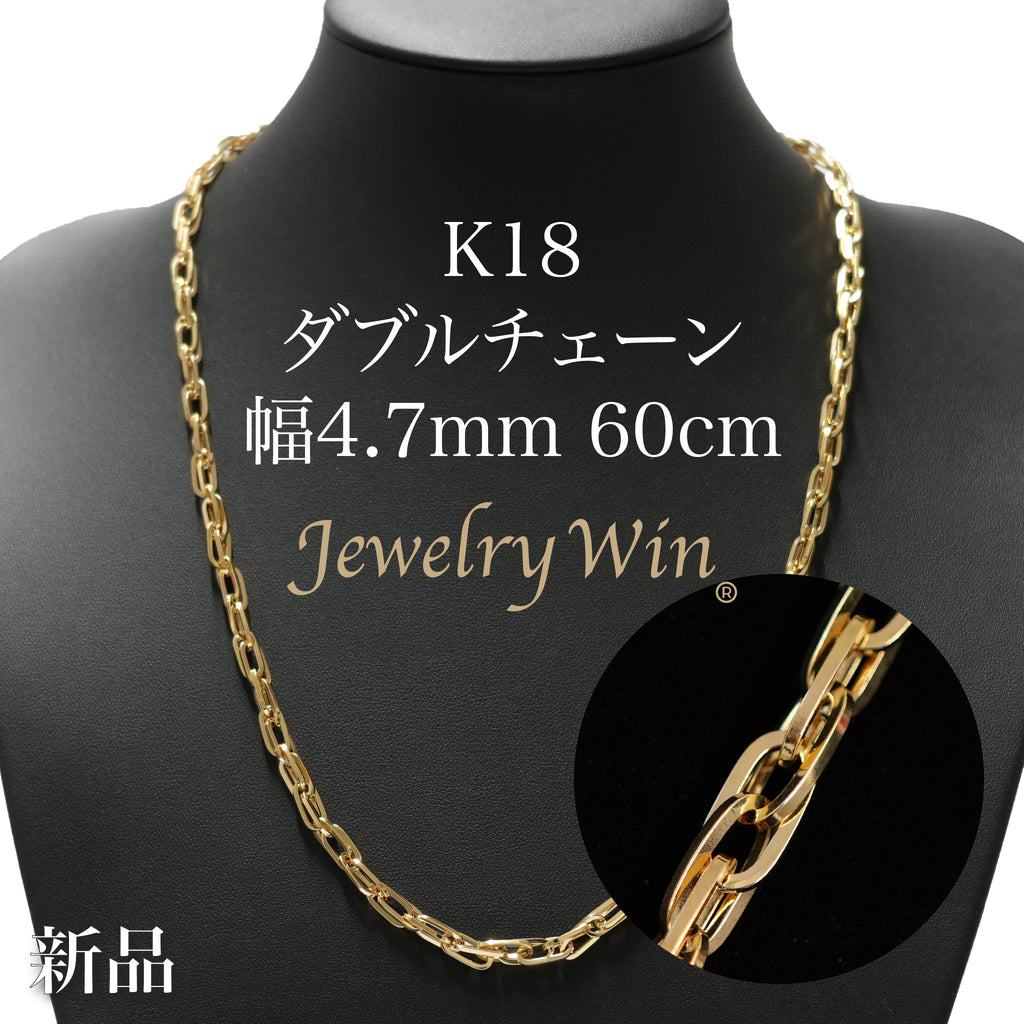 商品名 ダブルチェーン ネックレス K18 幅4.7mm 1.0角線 60cm