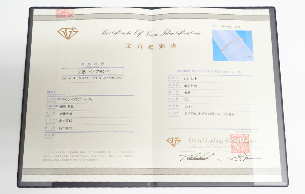 商品名 ダイヤモンドテニス ブレスレット ストレート K18枠 幅約2.6mm 20cm トータル3.17ct カラー:G〜H クラリティ:VS-2〜SI-1 カット:VG ※ダイヤモンドのグレードは目安となります※