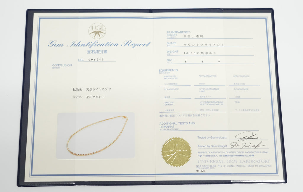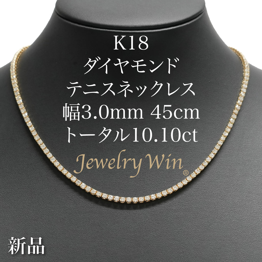 ダイヤモンドテニス ネックレス ストレート K18枠 幅約3.0mm 45cm トータル10.10ct カラー:G〜H クラリティ:VS-2〜SI-1 カット:VG ※ダイヤモンドのグレードは目安となります※