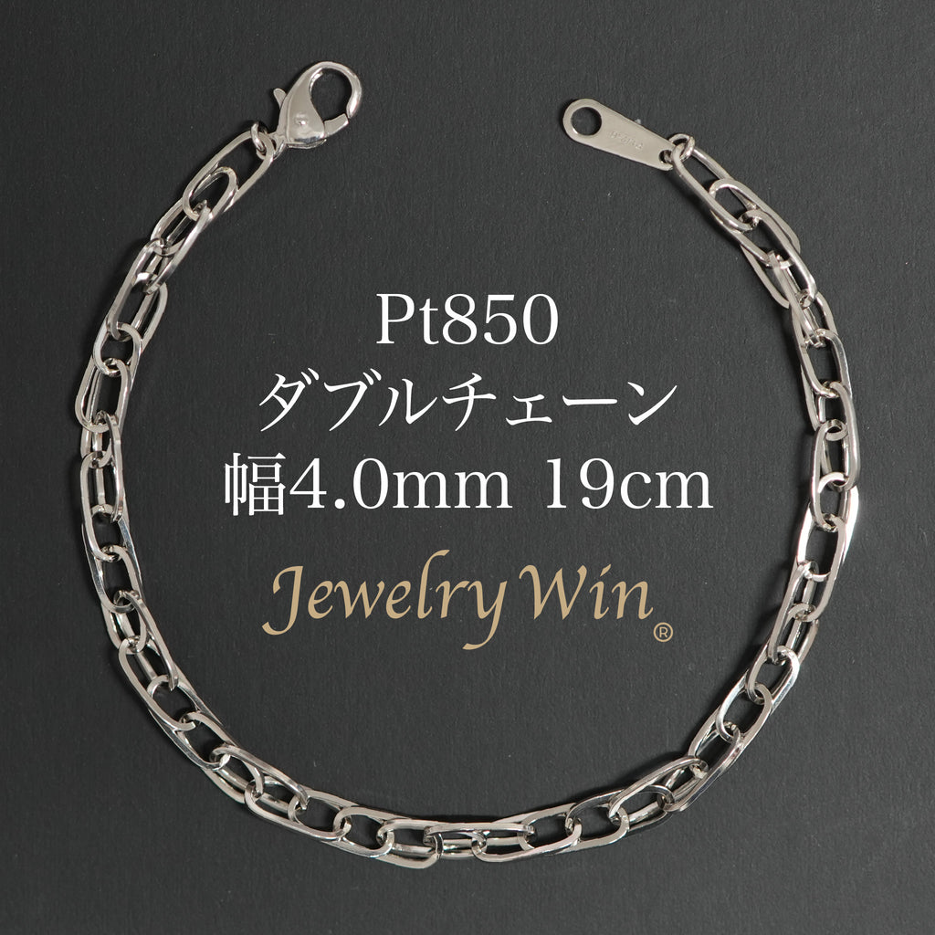 ダブルチェーン ブレスレット Pt850 幅4.0mm 0.7角線 19cm