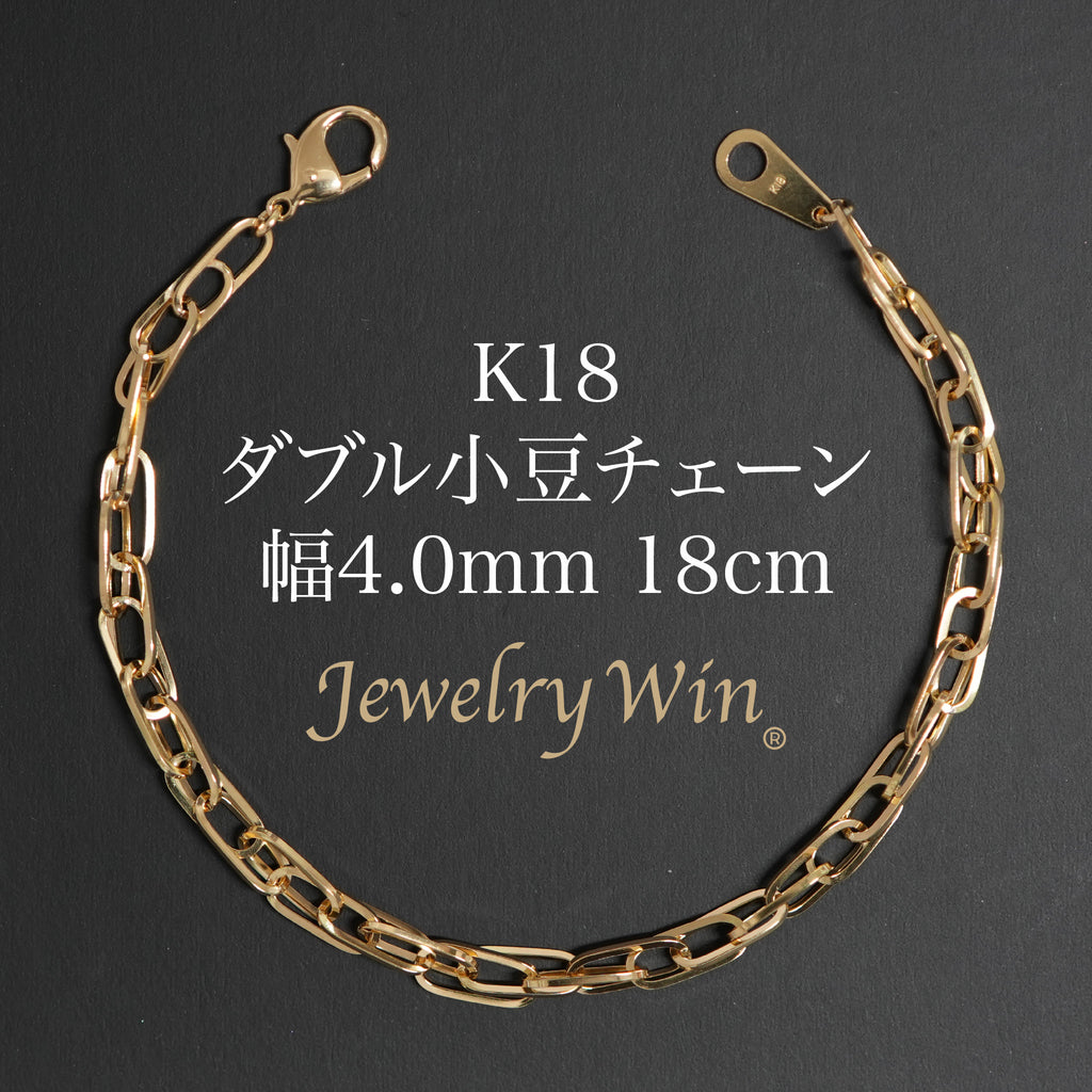 ダブル小豆チェーン ブレスレット K18 幅4.0mm 0.7角線 18cm
