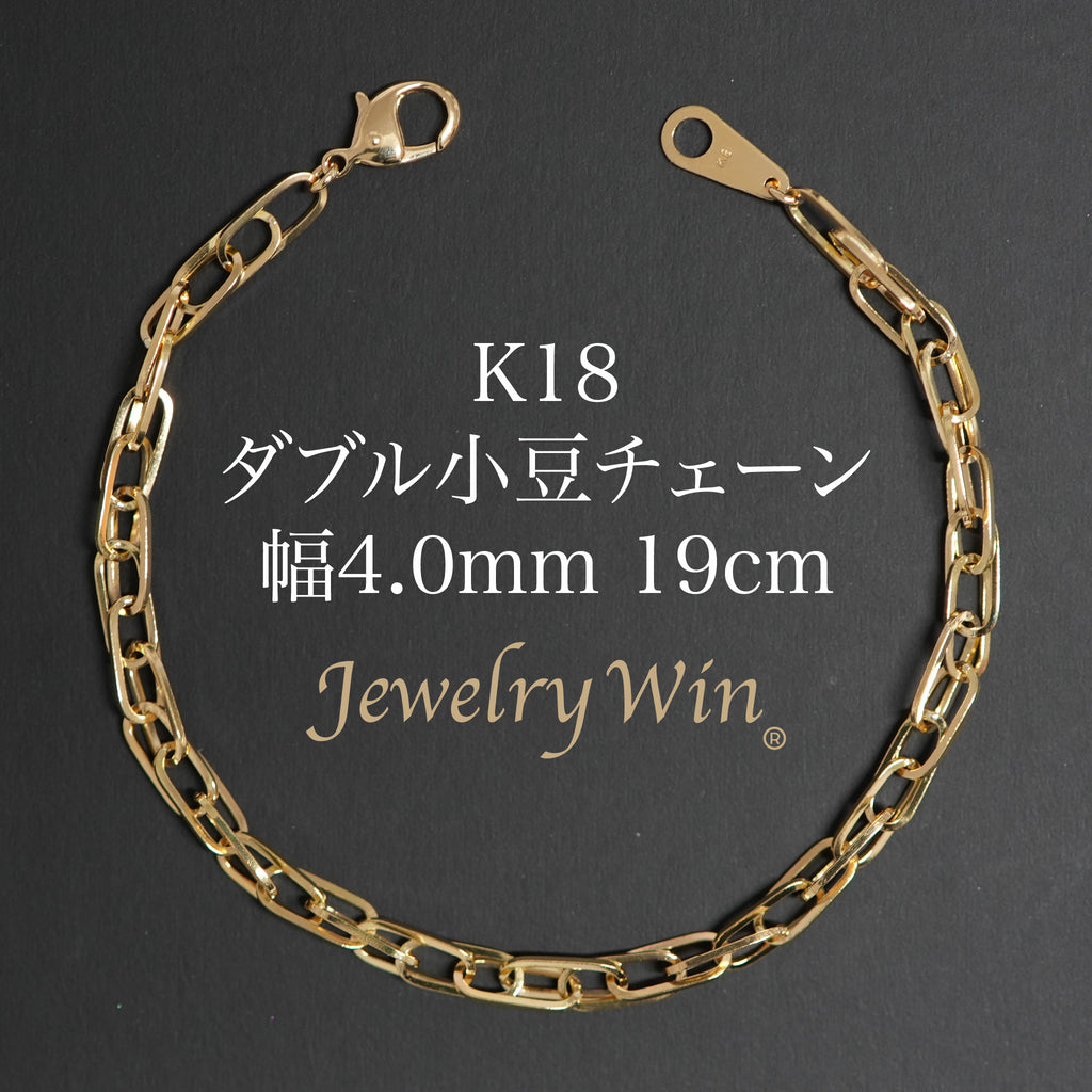 商品名 ダブル小豆チェーン ブレスレット K18 幅4.0mm 0.7角線 19cm