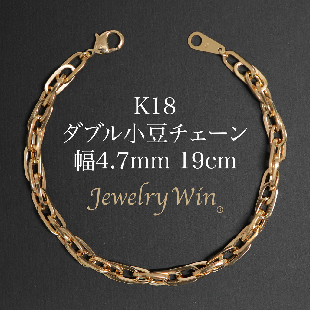 商品名 ダブル小豆チェーン ブレスレット K18 幅4.7mm 1.0角線 19cm
