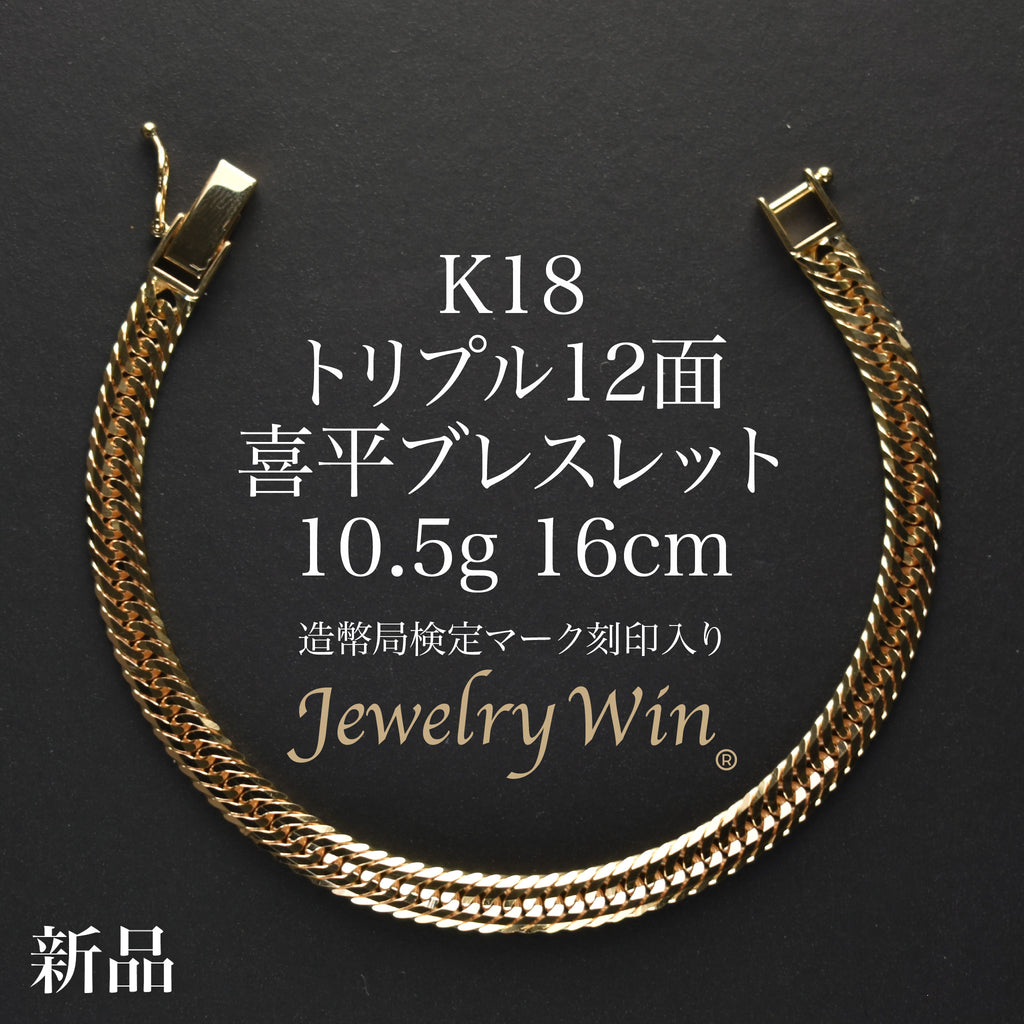 商品名 喜平 ブレスレット K18 トリプル 12面 10.5g 16cm 造幣局検定マーク(ホールマーク)刻印入り