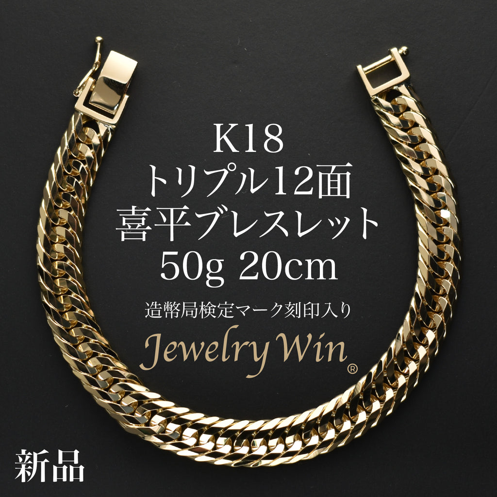 商品名 喜平 ブレスレット K18 トリプル 12面 50g 20cm 造幣局検定マーク(ホールマーク)刻印入り