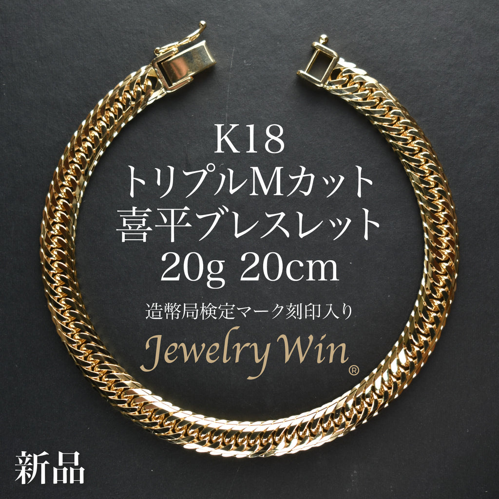 商品名 喜平 ブレスレット K18 トリプル Mカット 20g 20cm 造幣局検定マーク(ホールマーク)刻印入り