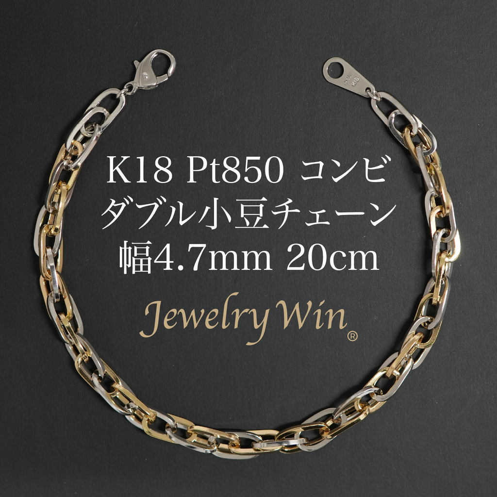 商品名 ダブル小豆チェーン ブレスレット K18 Pt850 コンビ 幅4.7mm 1.0角線 20cm