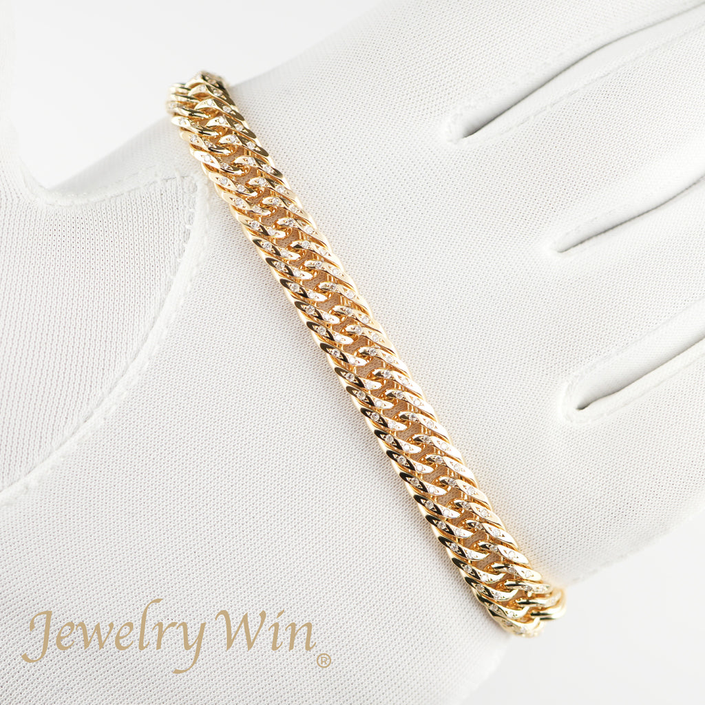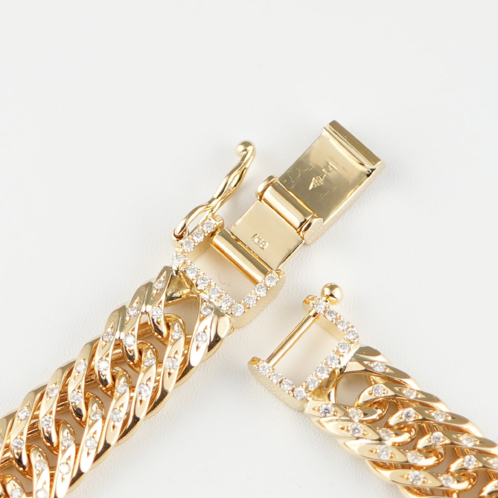 | 商品名 | 【要お問い合わせ】喜平 ブレスレット K18 トリプル 8面 30g 18cm (出来上がり重量約29g前後) 造幣局検定マーク(ホールマーク)刻印入りベース アフターダイヤモンド留め加工(1コマ4pc留め) 喜平金具アフターダイヤモンド留め加工 |