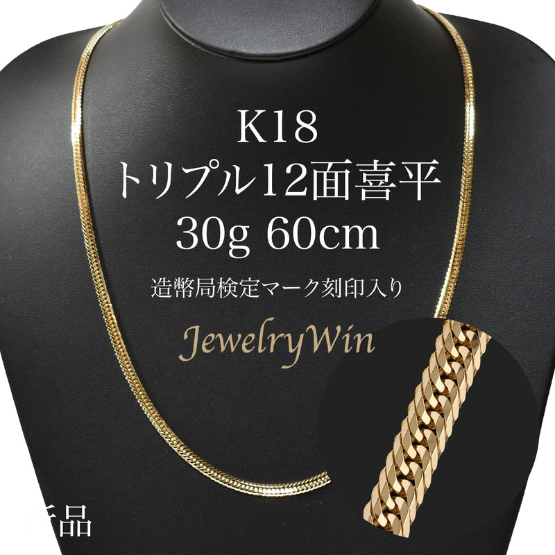 商品名 喜平 ネックレス K18 トリプル 12面 30g 60cm 造幣局検定マーク(ホールマーク)刻印入り